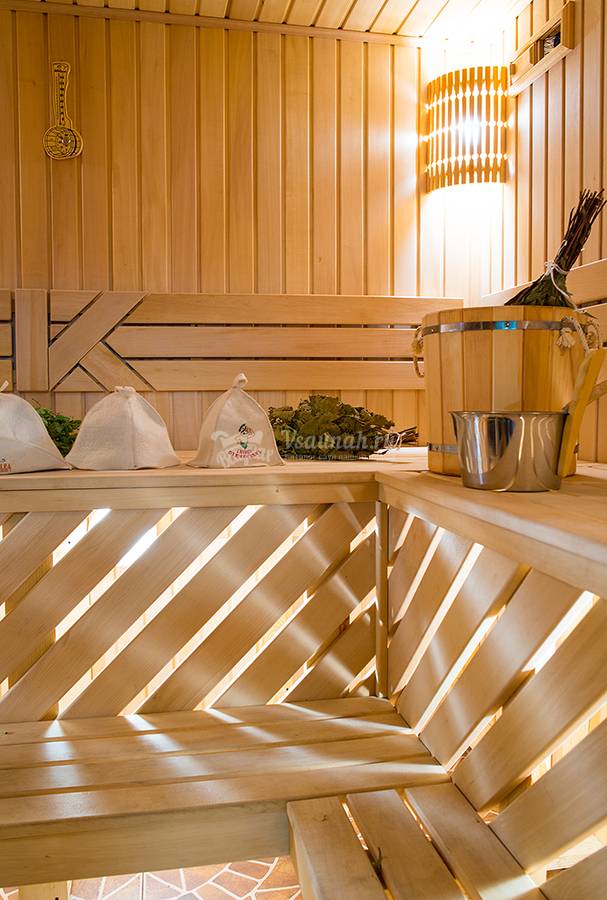- Отделка из натуральной липы. У этого дерева есть удивительная способность не нагреваться под воздействием высоких температур. Поэтому вы можете полностью расслабиться, сидеть или лежать на полках без каких-либо дискомфортных ощущений. Кроме того, липа выделяет полезные ферменты, которые предупреждают заболевания верхних дыхательных путей.