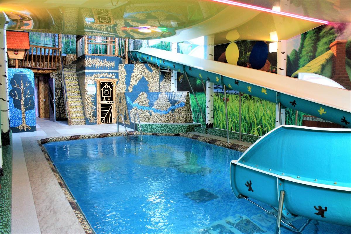 - Зал «Незабудка», рассчитанный на компании из 10-12 человек. В нем также можно попариться в русской, турецкой или финской сауне, повеселиться на водных горках и принять джакузи, поиграть на бильярде и спеть любимые песни в караоке.